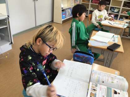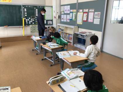 算数科の時間です。長さの学習です。両手を広げた長さについて各自で予想をしていましたが、多くの子は実際よりも短い長さを予想していました。学習後にある程度の予測ができるようにしたいですね。