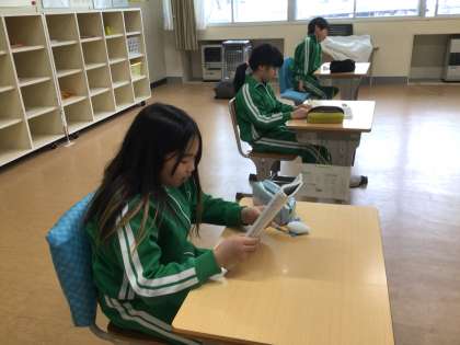 国語科の時間です。俳句についての学習でした。前時に季語のことや五・七・五について学習していましたが、今日は読みの練習をしていました。