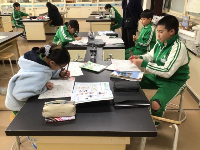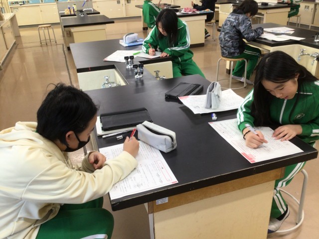 理科の時間です。今までに習った単元の復習プリントをしていました。明日が理科の学力テストです。学びの成果を出したいですね。