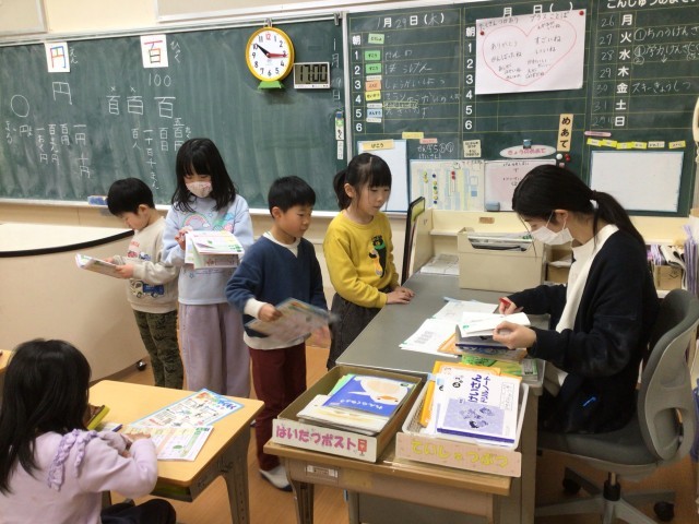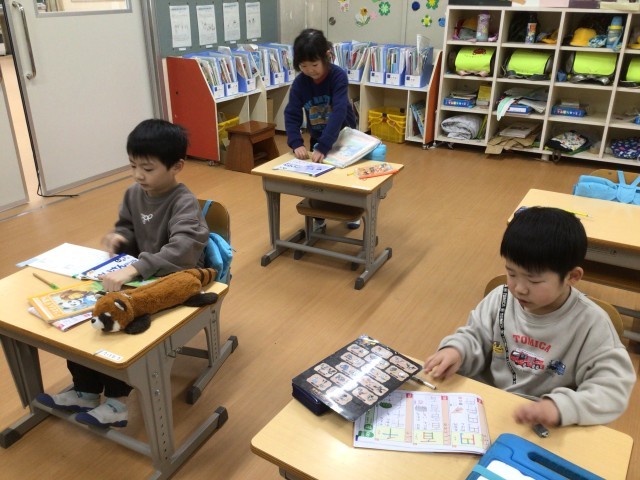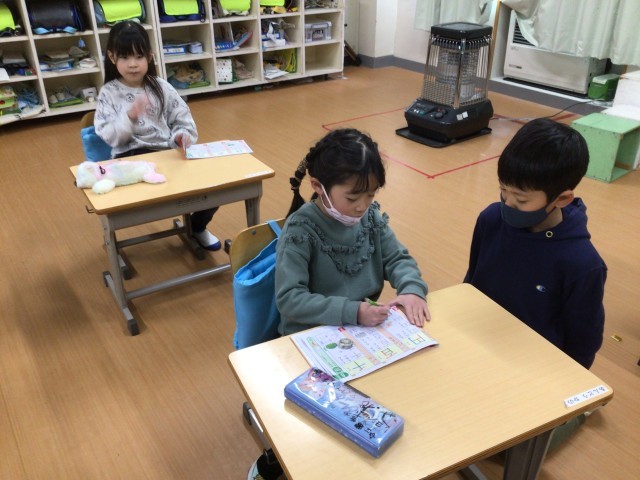 国語科の時間です。「百」「円」の進出漢字を習い、漢字ドリルで練習をしていました。○をもらった子は嬉しそうでした。