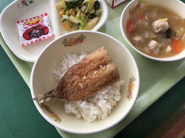 いわしのかばやき丼 なばなのおひたし つくね汁 節分豆