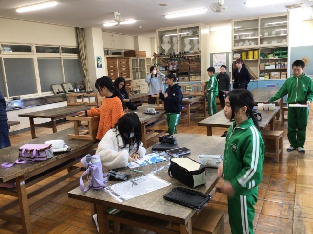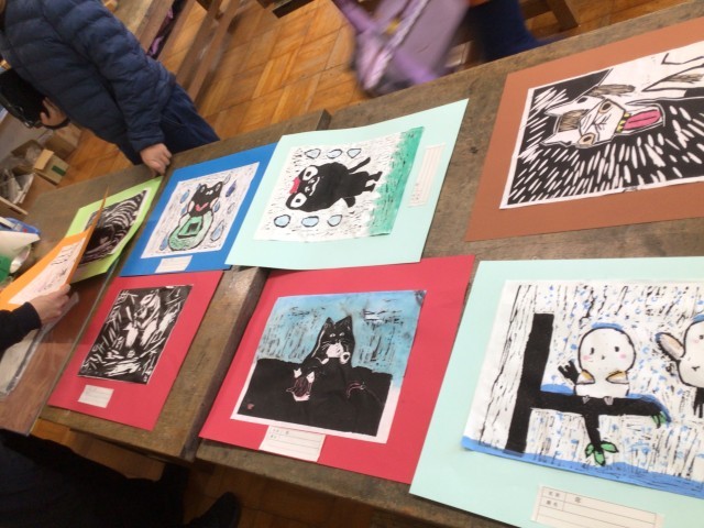 図画工作科の時間です。先週印刷した版画用紙に色づけをしていたようです。色をつけると雰囲気も変わって見える気がしました。
