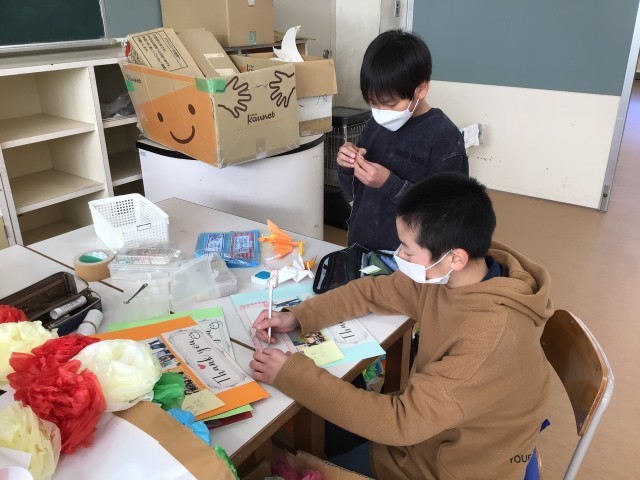 5年生も6年生を送る会の準備をしていました。司会進行の練習やメッセージカードへの記入などの仕事でした。中心となって進める5年生、よろしくお願いします。