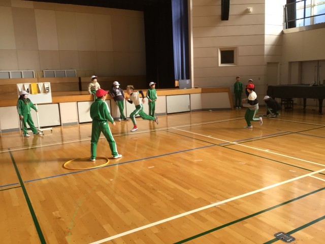 こちらも保健体育科の時間です。キャンディーベースボールをしていました。ランナーが次の塁に進むのが距離もあって難しいようです。