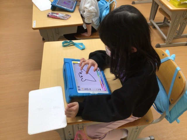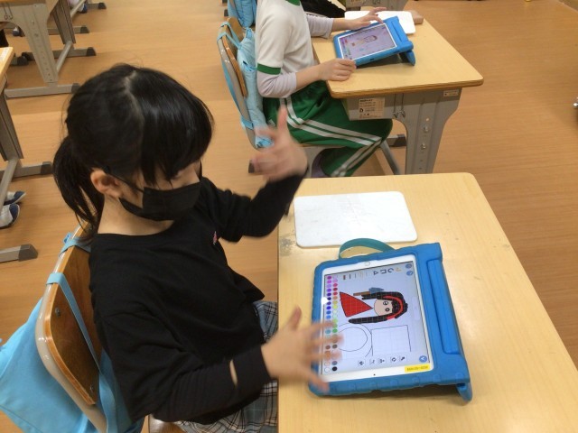 ICT支援員の先生に教わりながら、スクラッチのアプリで「おばけやしき」のプログラミングをしていました。各自で作ったおばけは、かわいらしいものからちょっと怖いものまでさまざまでした。