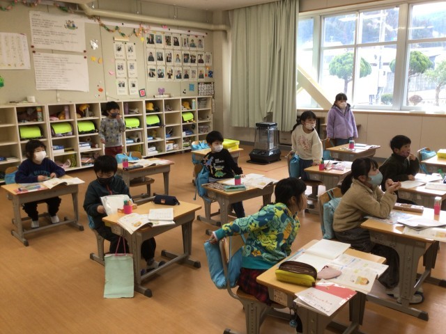 算数科の時間です。10より大きい数の計算の単元の学習でした。自分の作った問題を黒板に書いて、友だちの問題について計算をしていました。