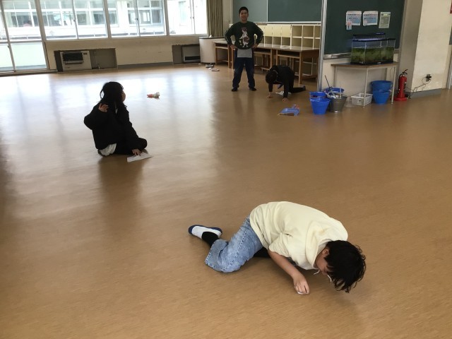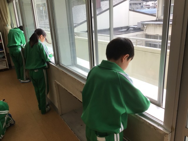5年生も大掃除をしていました。教室の床や窓の部分、ワークスペースの床も丁寧に磨いていました。