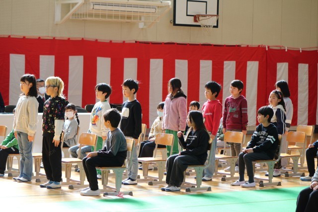 本年度の修了式を行いました。始めに3名の代表児童の振り返りの発表があり、来年度の抱負を語ってくれました。その後、学年ごとに修了証書を受け取りました。明日から春休みに入ります。交通安全や健康に気を付けて生活し、4月8日にまた元気な姿を見せてください。