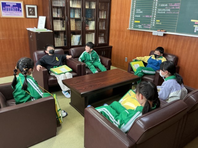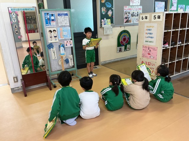 学校案内ということで、2年生が1年生に校内の部屋を案内し、説明をしていました。保健室や職員室、校長室などたくさんの場所を案内していました。