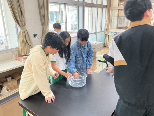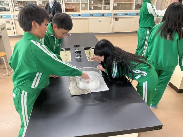 理科の時間です。ものが燃えるのに関係している気体は何かを調べる実験をしていました。酸素、二酸化炭素、窒素の3つの気体を使って結果を比べていました。