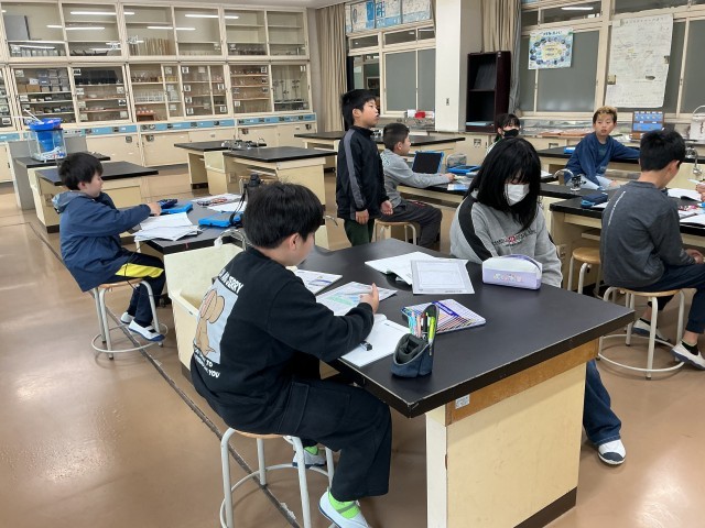 理科の時間です。天気の変化の学習です。晴れと曇りはどういう基準で判断するのかについて、空に見える雲の割合からであることをノートにまとめていました。