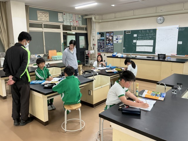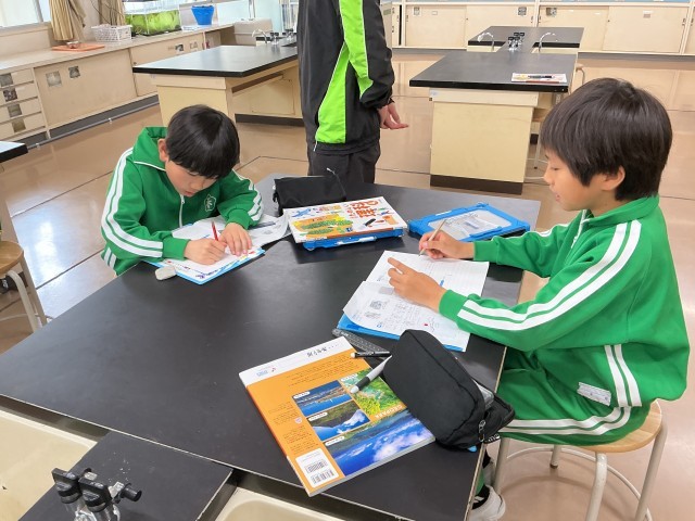 理科の時間です。天気による気温の変化の学習でした。2日間の観察結果をもとにして分かったことを話し合っていました。
