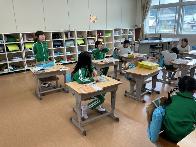道徳科の時間です。「金のおの」の題材で話し合いをしていました。正直なことに対するよさを感じることができたと思います。