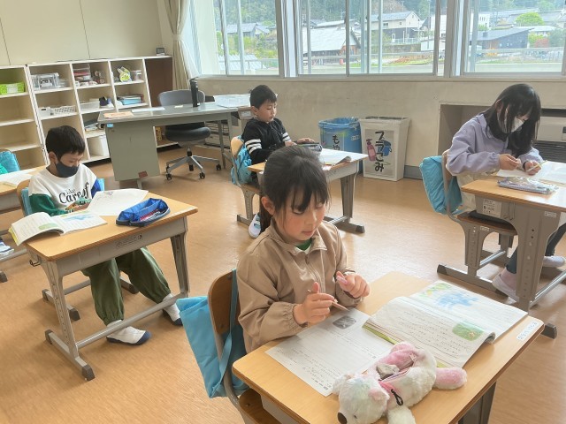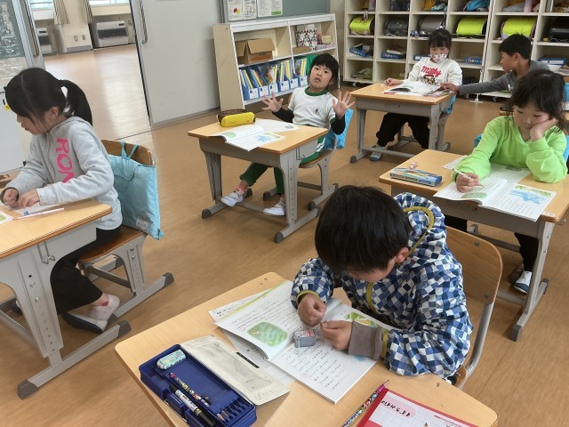 国語科の時間です。「風のゆうびんやさん」の物語の読み取りをしていました。この時間は、くもの様子の読み取りでした。