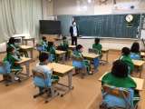 算数科の時間です。長さの学習です。両手を広げた長さについて各自で予想をしていまし...