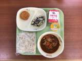 【今日の献立】 ごはん ヤンニョムチキン ほうれんそうのナムル 五目スープ 今...
