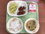 【今日の献立】 ごはん まぐろと大豆のみそがらめ たくあんあえ かきたま汁 ...