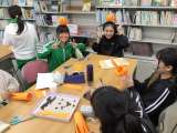 図書室で2、4、6年生はハロウィン工作を行いました。図書館司書の方から作り方を...