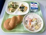 11月24日(水)の給食は、 【ツイストパン、牛乳、ほうれん草のキッシュ、イタリ...