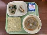 【今日の献立】 ちゃんぽん ひじき入りぎょうざ もやしのナムル 今日は長崎...