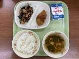 【今日の献立】 ごはん チキンチキンごぼう 磯香あえ けんちん汁 今日は子...