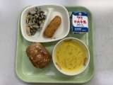 【今日の献立】 ごはん ミンチカツ 切り干し大根サラダ かきたま汁 今日は...