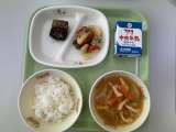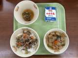 【今日の献立】 ごはん 厚焼きたまご 茎わかめのきんぴら ちゃんこ汁 今日...