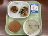 【今日の献立】 ツイストパン マカロニグラタン かぼちゃサラダ 野菜たっぷりト...
