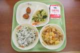 【今日の献立】 わかめごはん 愛知のれんこん入りつくね ほうれんそうのおひたし...