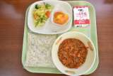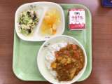 【今日の献立】 カレーライス ビーンズサラダ フルーツミックス 今日はカレ...