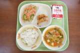 【今日の献立】 ごはん 揚げぎょうざ はるさめサラダ キムチスープ 今日も...