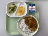 今日の献立 カレーライス ブロッコリーサラダ フルーツポンチ 昨日から給食が始...