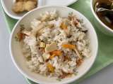 4月19日の献立 たけのこごはん にぎすフライ じゃがいものみそ汁 たけのこ...