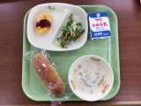 【今日の献立】 米粉パン オムレツ アスパラガスサラダ 春キャベツのポタージュ...