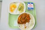 【今日の献立】 カレーライス たくあんあえ フルーツポンチ 今日は大人気の...