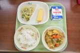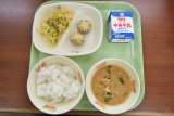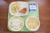 【今日の献立】 ごはん とり肉のから揚げ 和風サラダ 豆乳入りみそ汁 今日...