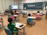 2年生の子ども達が、1年生の子ども達を連れて学校の色々な場所について説明してま...