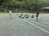 ハードル走をしました。同じ足を上げて跳ぶことや、抜き足を横にして跳ぶことなど、...