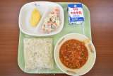 【今日の献立】 ごはん 野菜入りしゅうまい 中華風酢の物 ピリッと厚揚げ ...