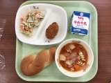 【今日の献立】 ツイストパン コーンコロッケ チキンサラダ ミネストローネ ...