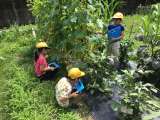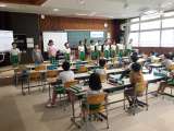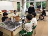 講師の方を招いて、稲武の桶茶について学びました。子ども達は茶桶で泡立てたお茶を...