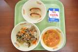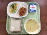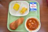 【今日の献立】 スライスパン スラッピージョー かんきつサラダ コーンチャウダ...