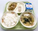 9月30日(木)の給食は、 【ごはん、牛乳、レバーとじゃがいもの甘辛煮、ゆかりあ...