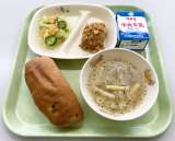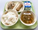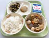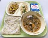 9月27日(月)の給食は、 【ごはん、牛乳、肉春巻き、炒めビーフン、中華スープ】...