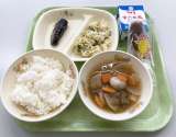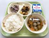 9月21日(火)の給食は、 【ごはん、牛乳、いわしの梅煮、とり肉のごまマヨサラダ...