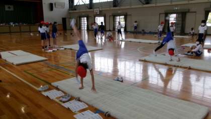 4月28日(金)5年生の授業の様子です。1枚目は、3組の国語「だいじょうぶ だいじょうぶ」の授業です。単元のまとめとして、クラスで音読発表会を行いました。2枚目は、2組の外国語「自己紹介カードを作ろう」です。次回、互いに英語で自己紹介できるように、自分の名前や好きなものを記入したカードを英語で作成しました。3枚目は1組の体育マット運動「基本の技を身につけよう」です。今日は、前転・後転・壁倒立・開脚前転などの技の確認をしました。きれいに側方倒立回転ができている児童もいました。