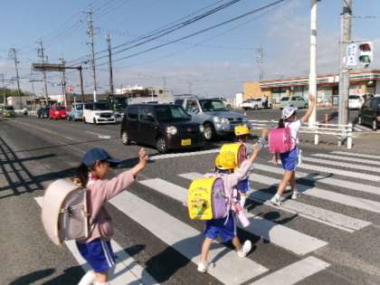 5月11日(木)から、春の全国交通安全運動が実施されています。保護者の方々はもちろん、交通安全指導員やボランティアの見守り隊をはじめとする地域の方々、愛知県警・市交通安全防犯課の方々など、たくさんの大人が登下校を見守ってくれています。