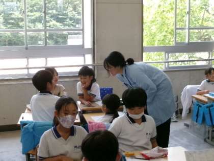6月19日(月)第4校時、給食センターから3名の講師をお招きし、4年生を対象とした給食の出前授業を実施しました。内容は、自分の住んでいる地域で、生産された食べ物を、その地域で、食べること、「地産地食」のすすめでした。