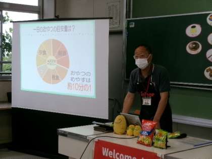 6月22日(木)第2〜4校時、家庭科室にて、外部から2名の講師をお招きし、3年生を対象とした出前授業「カルビー・スナックスクール」を行いました。