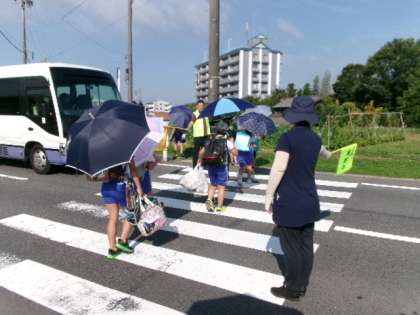 「おはようございます」と元気な声でさわやかに挨拶する児童や、ドライバーさんとアイコンタクトをして、お礼の会釈をしている児童もいます。